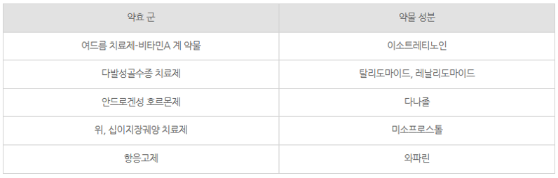 임산부 금기 약물